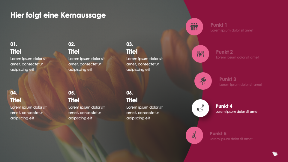 Kompatibel für: alle PowerPoint-Versionen ab 2013, Office365 & übertragbar in Google Slides & Keynote